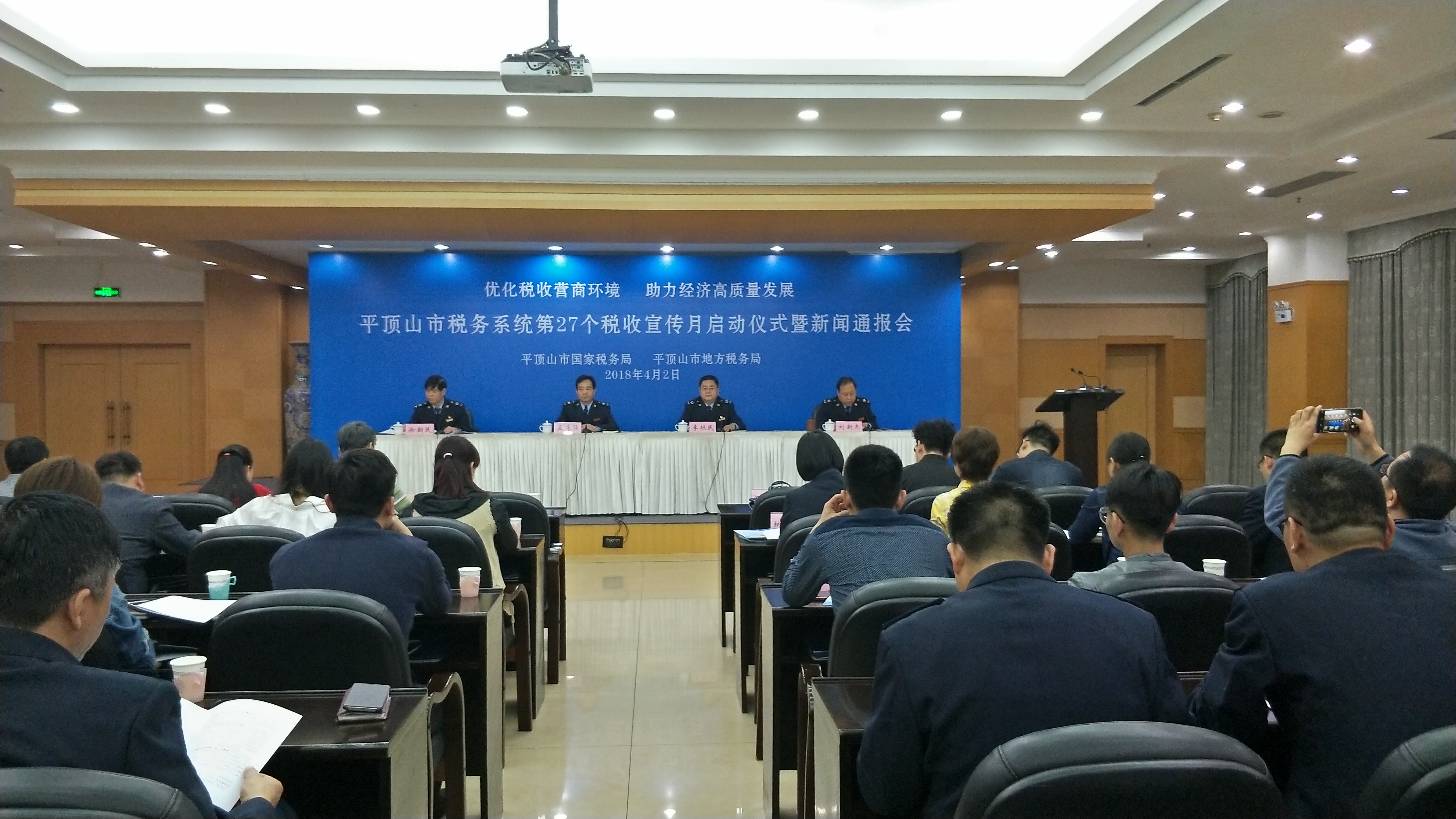 大河网讯 4月2日上午,平顶山市税务系统第27个税收宣传月启动仪式暨新闻通报会在平顶山市国税局三楼会议室召开。会议对税收宣传月活动作出安排,通报了平顶山市税务系统“便民办税春风行动”四年来取得的成效和今年的主要安排,着重介绍了4月1日起,我省正式实行的纳税人办税事项“最多跑一次”清单有关情况,由此拉开了平顶山市第27个税收宣传月系列活动序幕。