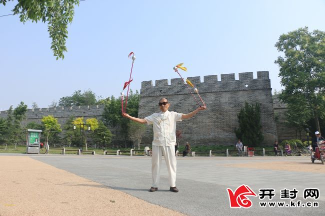 老人说,别看流星球只是一根绳子悬挂两个球,但真正运用起来有些费劲,要考虑到它转动起来后的平衡等方面的因素。说着,老人向记者演示起流星球怎么转动。只见他右手握着绳子中间的部位,然后让两端的球一上一下的旋转。看老人转得很轻松,一旁围观的市民也上前试了试。结果,不仅一下也没转起来,还险些让球砸着自己。老人笑着说,这流星球看起来很简单,转动起来却是需要一定技巧的。