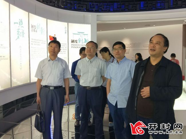 余仲华一行首先参观了自贸区开封片区展厅、开封片区综合服务大厅,听取并了解了自贸区开封片区的建设情况及目前取得的成就,了解了开封片区综合服务大厅窗口服务单位的运行及人才配置情况。在座谈会上,王星海汇报了河南自贸区开封片区的基本情况、开封片区人才管理机制、自贸区开封片区的人才需求和目前需要解决的问题。