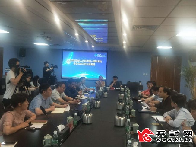 开封网讯 全媒体记者万廷化报道 5月23日,国家人社部中国人事科学院研究院调研组一行4人在中国人事科学研究院人才战略与政策研究室研究员余仲华带领下,到河南自贸区开封片区进行调研。省人社厅人才资源开发研究中心主任杨东风、省人社厅行政管理学会秘书长徐新奎、自贸区开封片区管委会副主任王星海等陪同。
