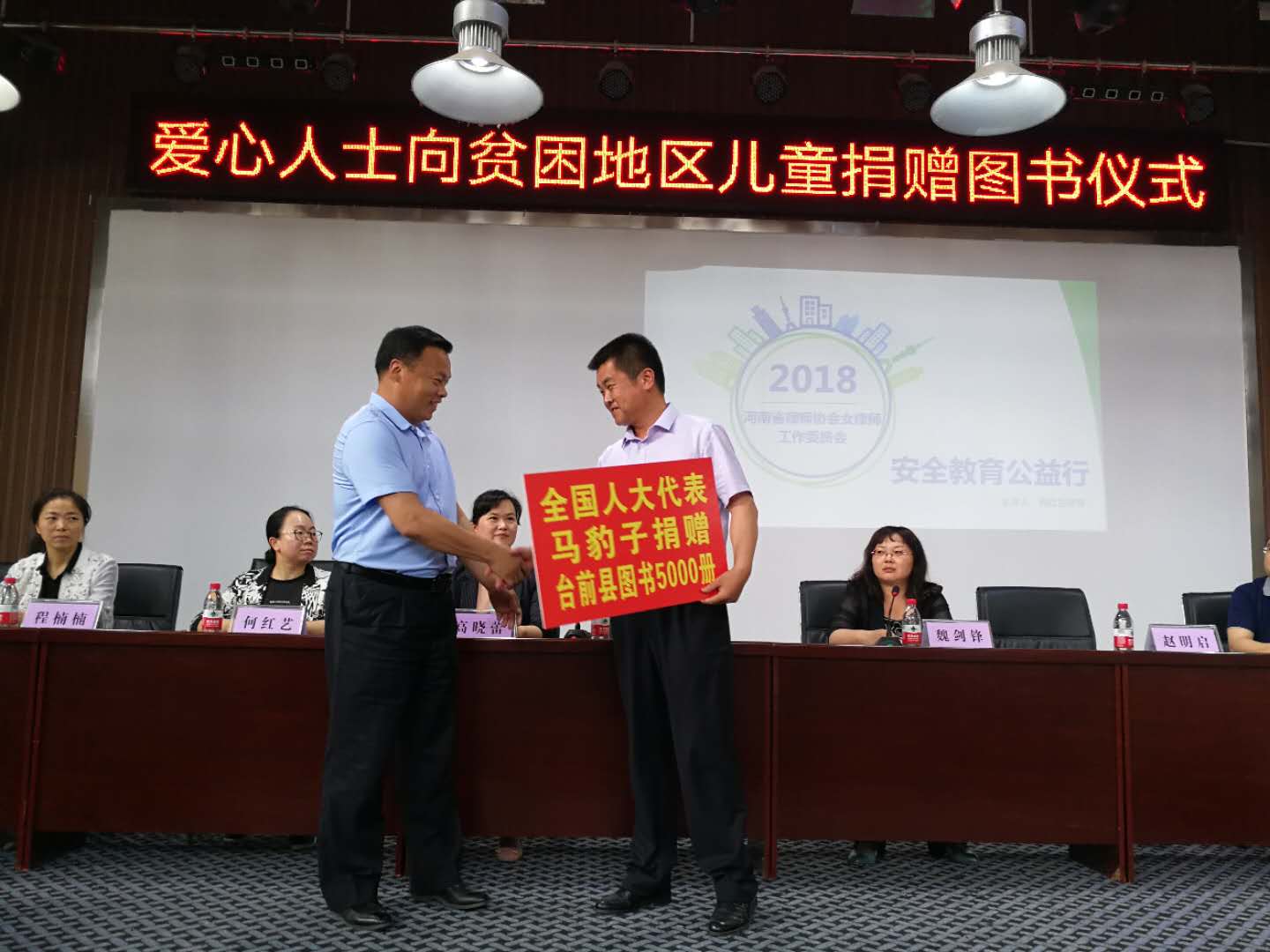 大河网讯 5月25日宝丰县赵庄镇大黄村党支部书记马豹子,带着26000多册、价值10多万元的儿童图书驱车450多公里来到濮阳市台前县思源实验小学。在捐赠仪式上马豹子说到“扶贫先扶智,捐赠这些书就是为了在六一儿童节来临之际,让更多贫困地区的儿童能够享受到更丰富的图书资源,过个美美的节日”