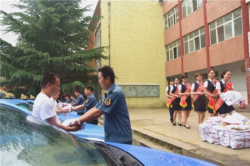 大河网讯 5月25日上午,由平顶山银行统一印制座套运至平顶山市区姚电大道东段的驾驶员培训学校时,已有20辆出租车代表在学校广场内整齐排列。在双方领导简单的交流后,印有“创文明城市,享美好生活”宣传内容的出租车座套通过平顶山银行礼仪人员交由客运管理处工作人员,再由客运管理处工作人员向出租车司机代表发放。