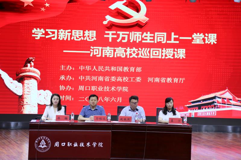 大河网讯 6月7日上午,河南高校“学习新思想千万师生同上一堂课——习近平总书记重要讲话精神讲师团”宣讲活动在周口职业技术学院开元校区学术报告厅举行。校领导赵振然、宋晓东、许永安出席宣讲会,教学院部总支书记、院长,处室负责人,全体思政课教师、辅导员,教师代表,学生理论学习社团骨干、学生党员、学生干部、“青马”工程学院代表800余人参加了现场宣讲活动。宣讲活动面向全校师生进行了网络直播。校党委副书记赵振然主持活动。