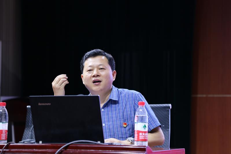 河南省高校“习近平总书记重要讲话精神讲师团”成员、教育部“新世纪优秀人才”、教育部“思想政治教育中心青年杰出人才”、我国首批“中国特色社会主义理论”博士、河南师范大学博士研究生导师、马克思主义学院院长马福运教授做了题为《正确理解中国特色社会主义进入新时代》的专题报告,他从新成就、新矛盾、新思想、新战略和新作为五个方面进行了详细解读,引导广大师生正确理解中国特色社会主义新时代的重大意义。