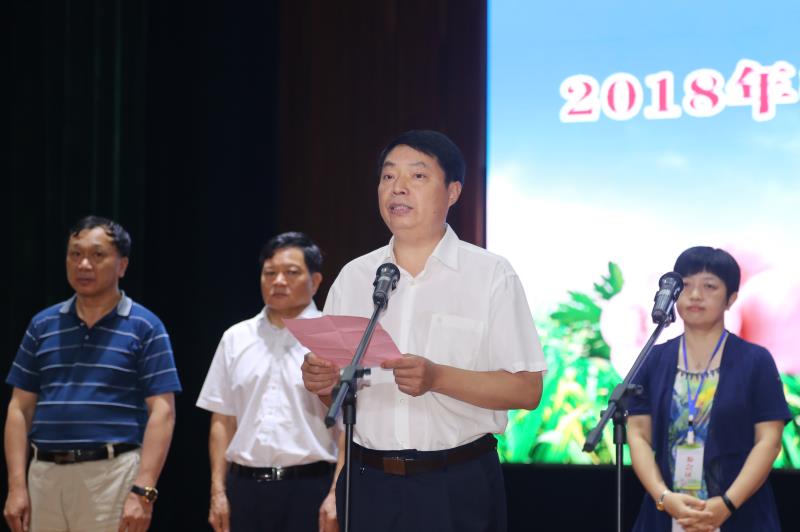 开封市政协副主席翟中州宣布2018年中国第十届(杞县)大蒜节开幕。