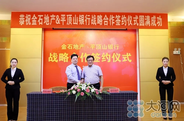 大河网讯 为大力支持小微企业发展,创新银企合作模式,9月7日上午,平顶山银行与平顶山市金石房地产开发有限公司签约,以批量信贷的形式支持小微企业。平顶山银行副行长、营业管理部主任任海峰与平顶山市新华区政府副区长胡炜哲、金石地产董事长李刚出席签约仪式并致辞。