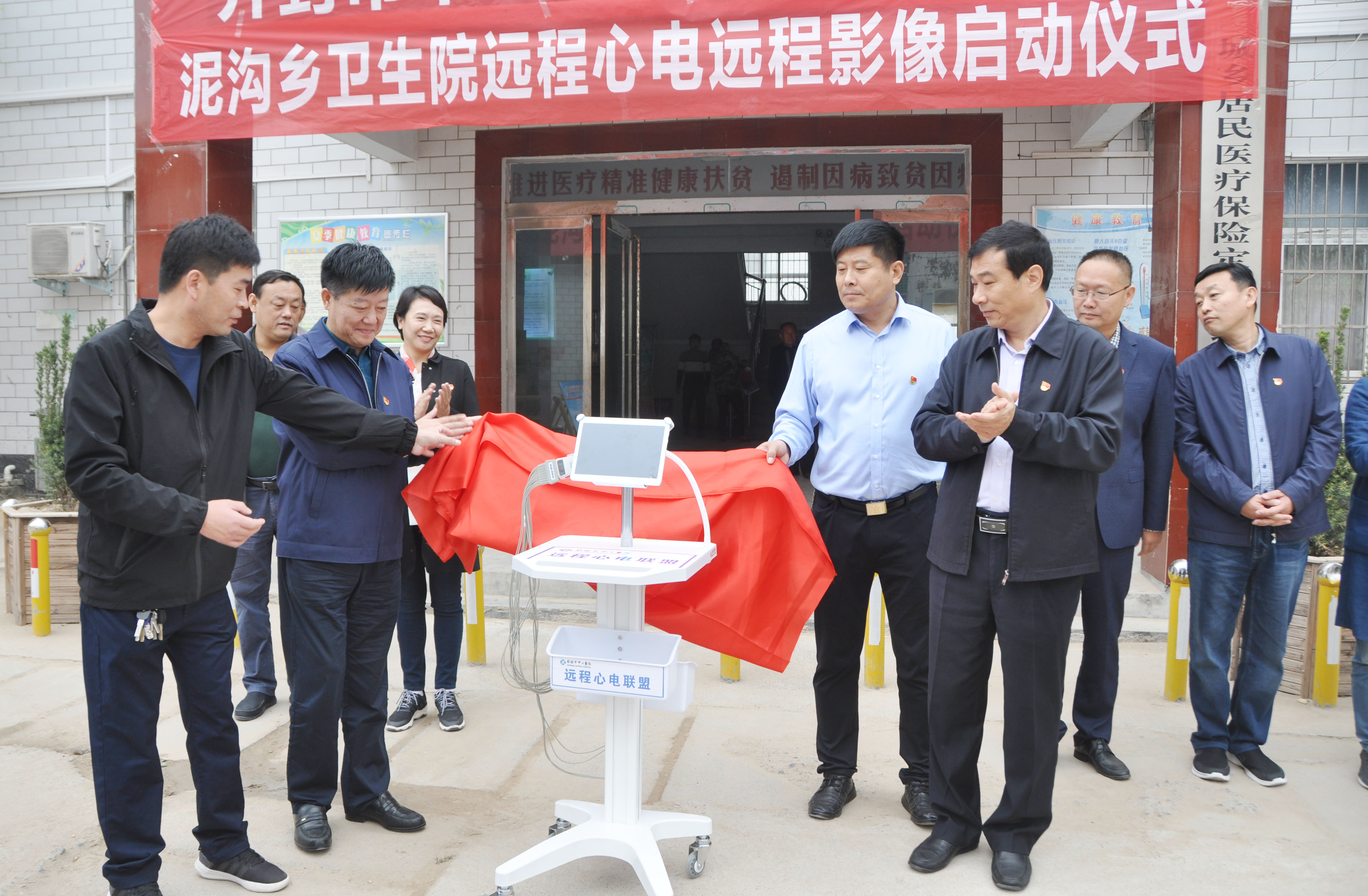 在杞县泥沟乡卫生院,健康扶贫项目“远程心电、远程影像”项目顺利启动。市中心医院党委书记、院长刘静宇、杞县卫生计生委主任罗洪生、泥沟乡政府乡长胡兴涛、泥沟乡卫生院院长崔志坚共同为“远程心电、远程影像”项目揭幕。党委书记、院长刘静宇在启动仪式上强调,脱贫攻坚不仅是目前各级党和政府政治生活中的一件大事,更是一项意义深远的民心工程,时值全国第五个扶贫日到来之际,开封市中心医院利用“互联网+医疗”的远程医学模式,着力解决基层医疗单位人才引进难和技术不足的问题,以提升泥沟乡卫生院的综合服务能力,让当地群众在家门口就能享受到三级甲等医院的诊断服务。启动仪式结束后,院领导一行对泥沟乡卫生院进行了实地调研,要求相关科室以“远程心电、远程影像”项目为纽带,根据卫生院的专科发展需求,选派专家开展查房、授课、手术指导等具体的健康帮扶活动。