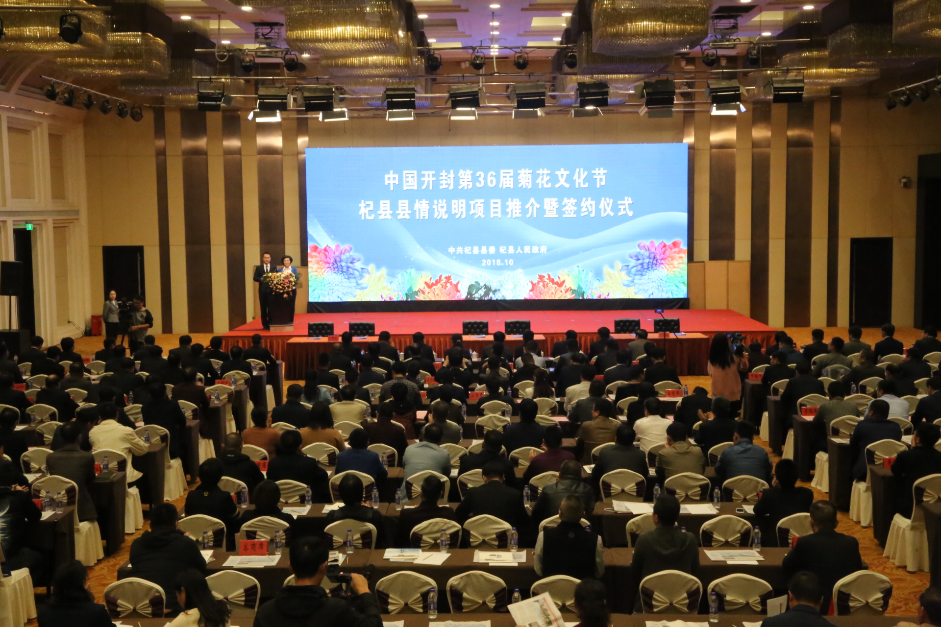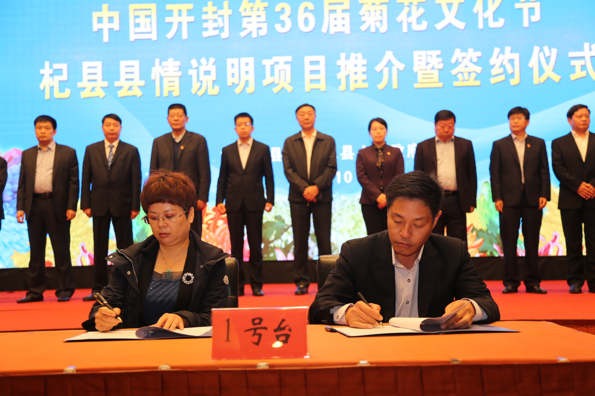 大河网讯 10月22日上午,中国开封第36届菊花文化节杞县县情说明项目推介暨签约仪式隆重举行。市人大常委会副主任高宏勋、副市长王玲,县委副书记、县长宗家桢,县委副书记陶毓敏,县人大常委会主任魏培林,县政协主席尚文彦等县四大班子领导及市金融监管局、发改委、环保局、商务局、农林局、财政局、国土局、供电局等市直部门有关负责人和杞县各乡镇、县直各单位负责人,来自北京、福建、浙江、江苏等地的100多名客商参加签约仪式。仪式由县委副书记陶毓敏主持。