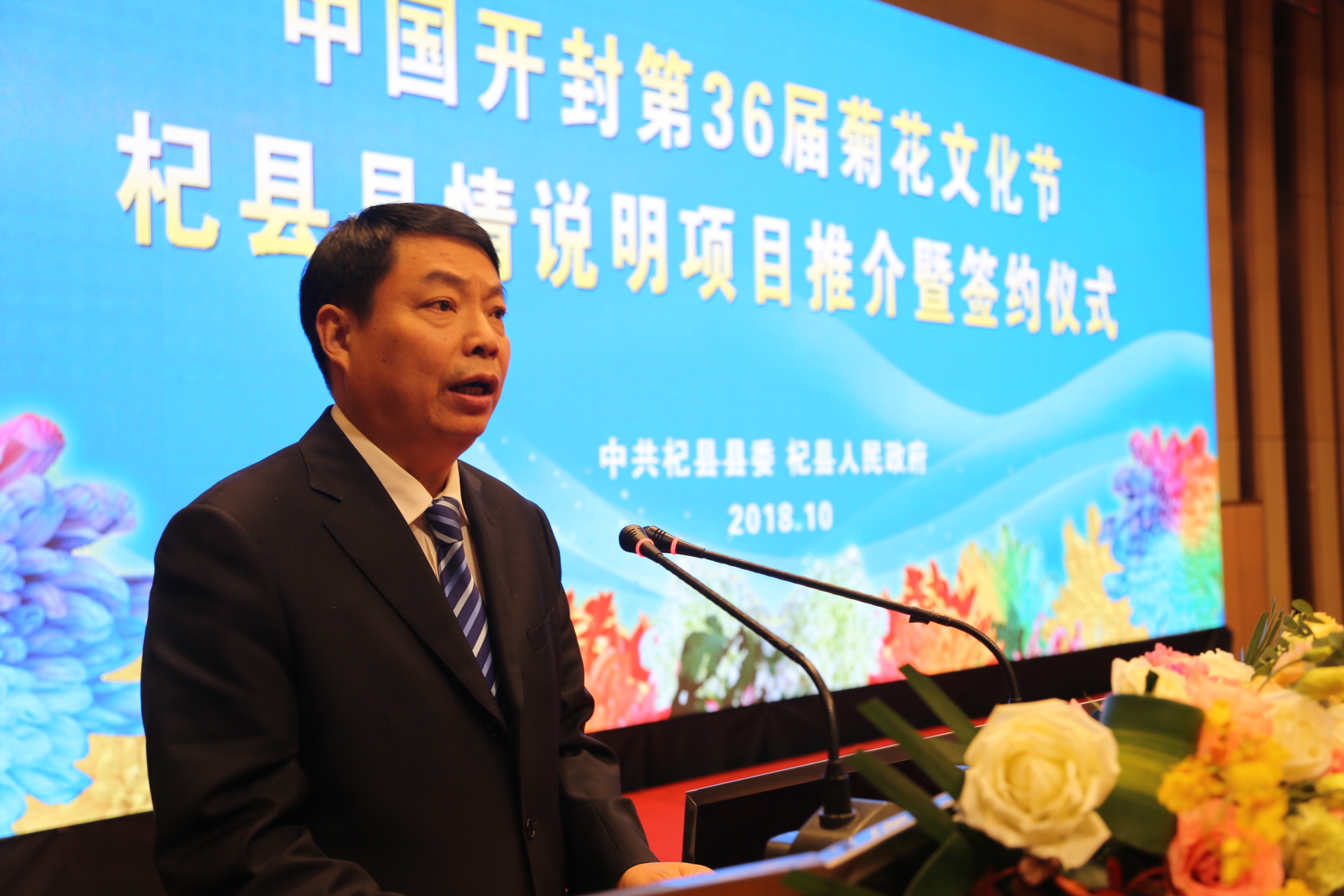副市长王玲在致辞中指出,杞县县情说明项目推介暨签约仪式是中国开封第36届菊花文化节的重要招商引资活动之一,希望杞县通过承办此次经贸活动,充分展示自身形象与发展成果,积极加强与海内外客商朋友的交流与沟通,力求围绕主导产业引进更多的“延链”“增链”和“补链”项目,把杞县的工业经济进一步做大、做强。希望参会的各界人士继续关心、支持开封和杞县的发展,为开封和杞县的招商引资牵线搭桥,深化合作,互惠互利,共同发展。