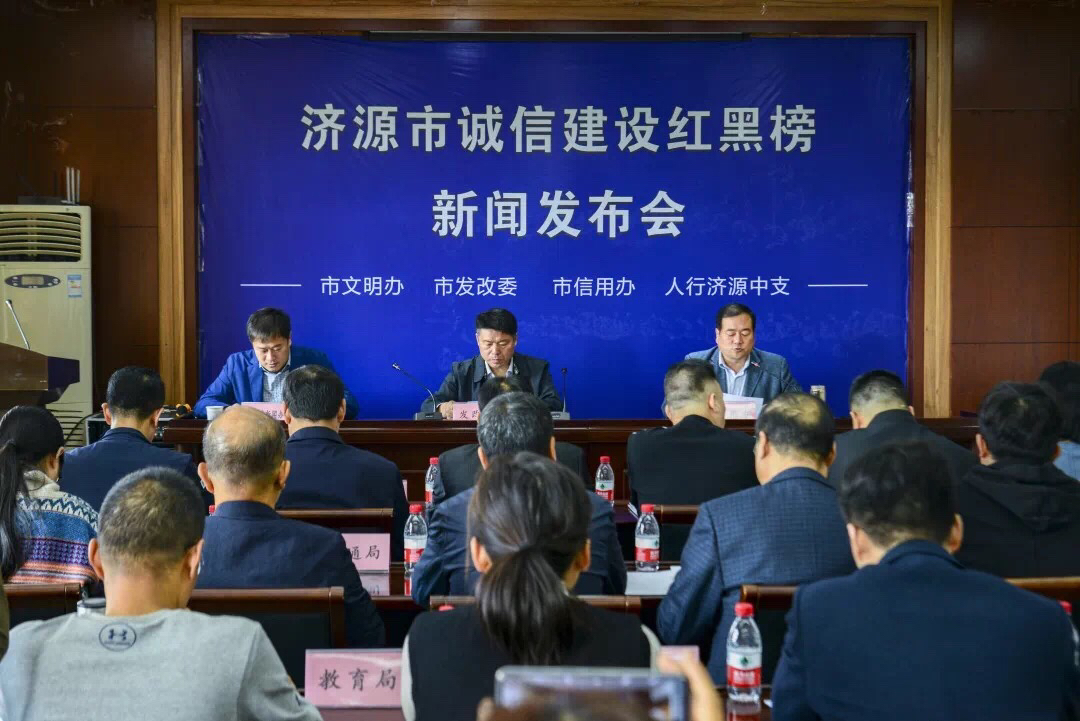 大河网讯 10月19日,济源市召开诚信建设红黑榜新闻发布会,济源市发改委、济源市信用办副主任李庆军通报济源市诚信建设"红黑榜"整体情况,济源市法院、住建局、交通局等7个单位发布2018年第三批诚信建设红黑榜名单。
