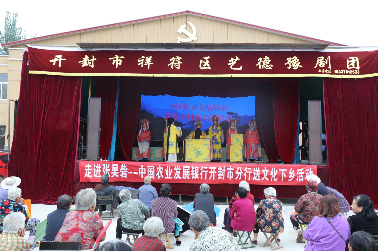 大河网讯 乡村振兴,文化先行。为践行党的十九大精神,落实乡村振兴战略,进一步推进乡风文明,丰富和活跃贫困村群众文化生活,9月14日至15日,农发行开封市分行联系祥符区豫剧团到袁坊乡张吴寨村开展文化下乡活动,为该村老百姓送上一份丰富精彩的文化大餐。