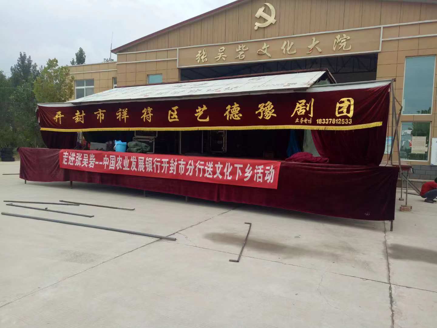 9月14日至15日,农发行开封市分行联系祥符区豫剧团到张吴砦开展文化下乡活动,为该村老百姓送上一份丰富精彩的文化大餐。本次活动共有4场演出,以豫剧、现代戏曲等形式为大家献上了《穆桂英挂帅》、《刘公案》等十几个经典曲目,共吸引1000余人次前来观看,受到了群众的热烈欢迎。舞台上,演员们的装扮光鲜艳丽、唱腔舒展奔放、招式专业精彩,博得了观众阵阵掌声。