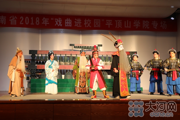 大河网讯 10月24日,由河南省教育厅、文化厅联合主办的河南省2018年“戏曲进校园”活动走进平顶山学院,由河南省豫剧院二团的艺术家、演员们带来了两场演出。平顶山学院400余名师生观看了演出。
