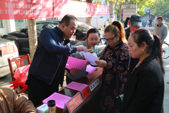 大河网讯 2018年10月31日,由永城市总工会、永城市人力和社会资源保障局主办,永城市城关镇人民政府承办的“金秋招聘月”专场招聘活动在城关镇行政服务大厅门口举行,活动现场设立咨询台,发放招聘岗位公告、农民工就业指导手册。