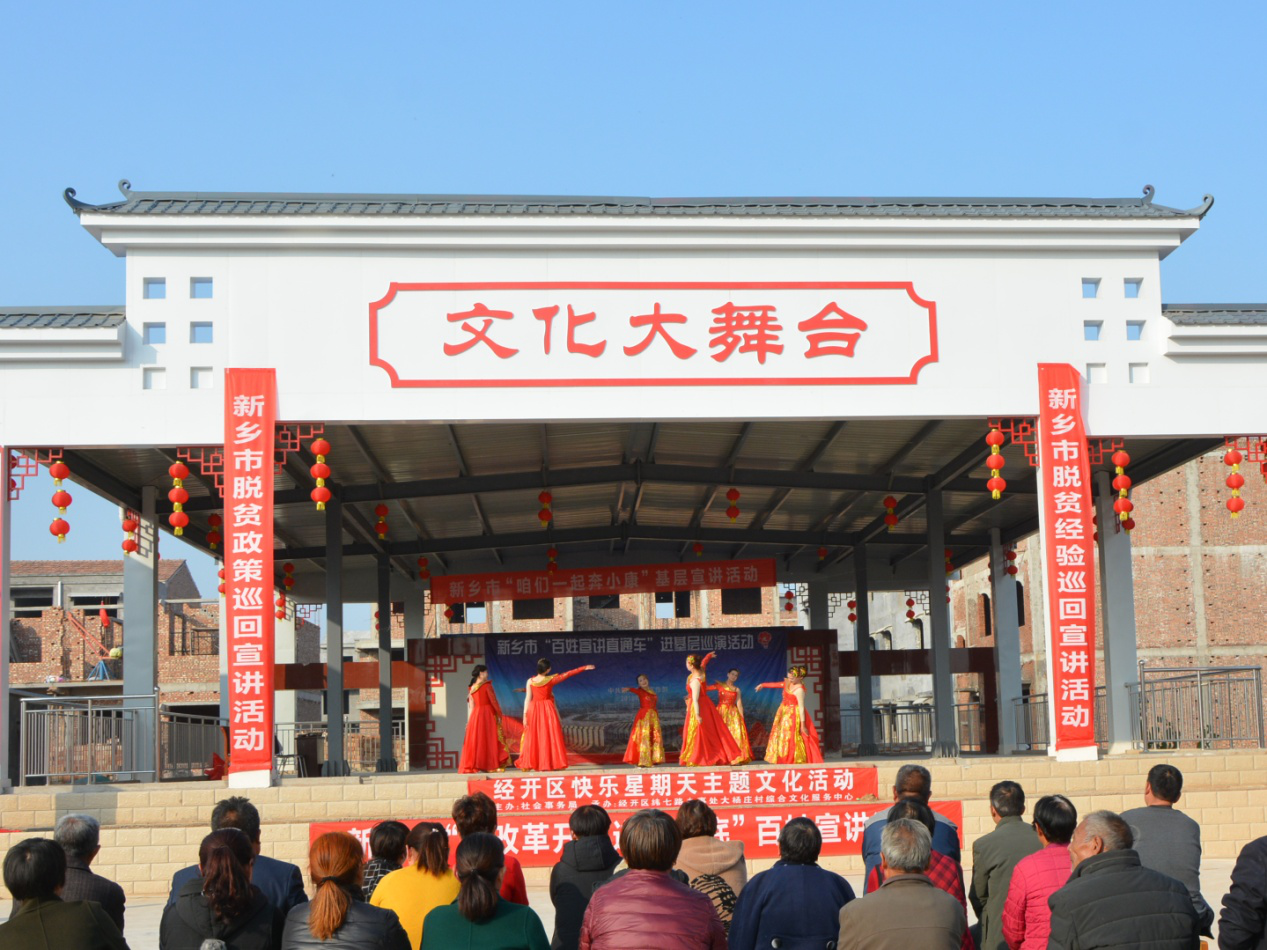 大河网讯 11月9日,为进一步发挥文化助力脱贫攻坚作用,提升党的脱贫政策、脱贫经验在基层的宣传效果,新乡市“百姓宣讲直通车”进基层巡演活动在国家新乡经济技术开发区大杨庄文化广场举行。