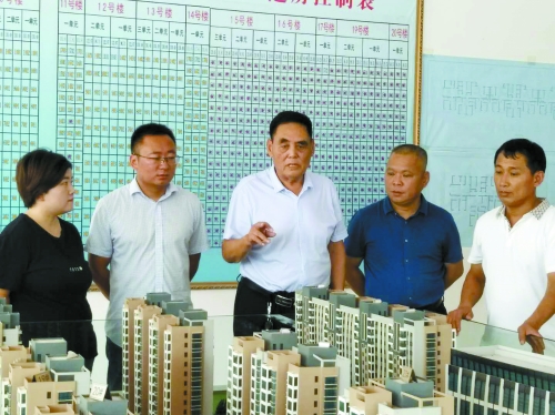 张英杰(中)和辖区拆迁指挥部成员一起探讨蒲光社区的发展 (陈荣霞/摄)