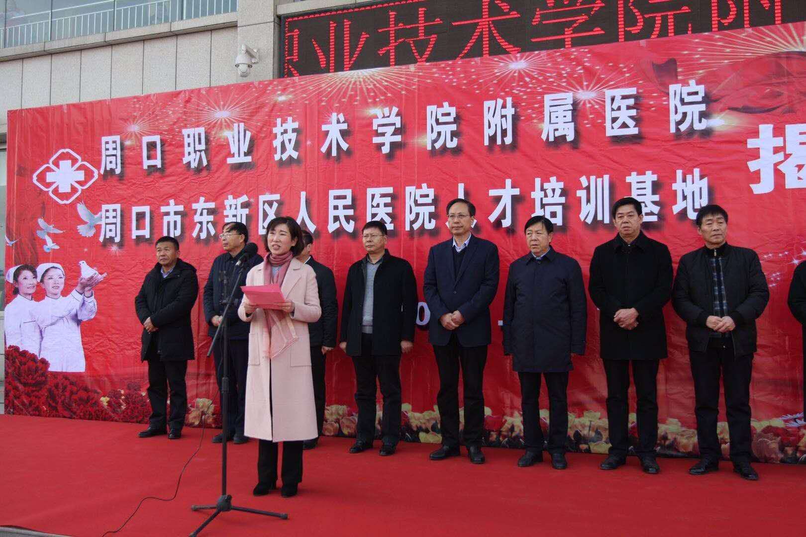 周口市人民政府副市长张广东、周口职业技术学院党委书记刘士欣、周口职业技术学院校长李清臣以及周口市东新区人民医院院长王淑华等参加了上午的揭牌活动。(苗海波 刘进才 王惠)