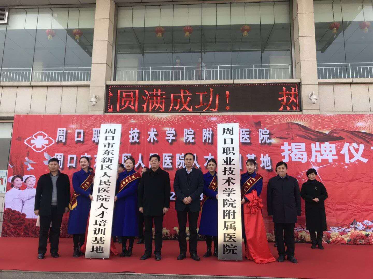 大河网讯 12月12日,第一场雪后的周口显得分外的寒冷,但周口职业技术学院附属医院暨周口市东新区人民医院人才培训基地揭牌仪式的与会人员心里却是暖意融融。当天,周口市东新区人民医院与周口职业技术学院正式联姻,双方将强强联合,优势互补,共同开启周口医学史上新篇章。