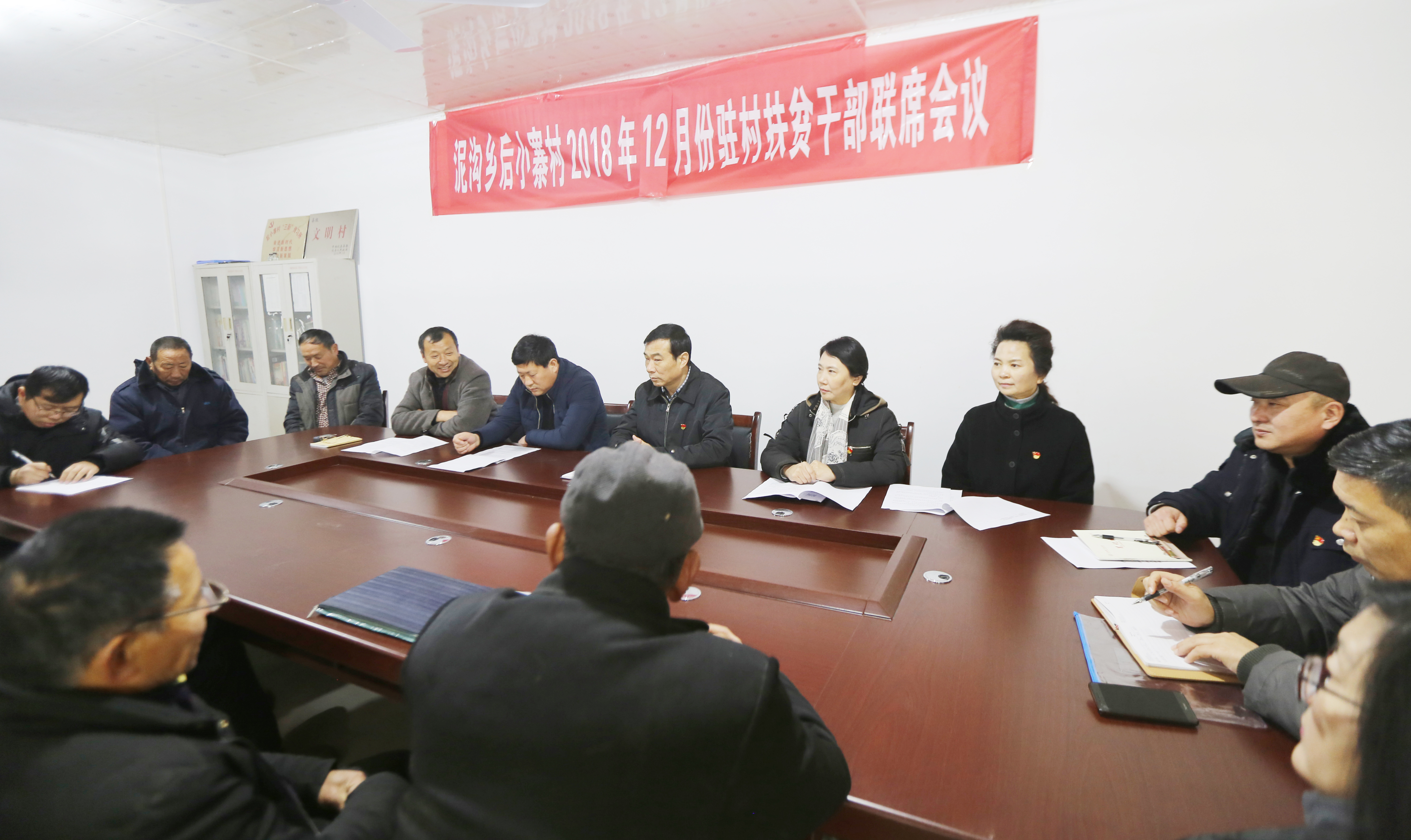 驻村扶贫干部联席会议由后小寨村党支部书记周义海主持。按照会议议程,驻村第一书记、工作队队长付承志首先对村文化广场健身器材安装、村容村貌整治等12月份重点工作和下月工作计划进行了汇报。随后,周义海书记对驻村工作队的上岗考勤情况进行了通报,并对工作队工作进行了点评。泥沟乡政府副乡长、脱贫责任组组长于因亮传达了杞县脱贫攻坚工作第十二次推进会会议精神,要求驻村工作队严格对照工作考核标准,抓好落实,确保完成扶贫任务。中心医院党委书记、院长刘静宇强调中心医院选派的驻村第一书记和工作队员,都是政治素质过硬、工作能力强的精干力量,全院党员职工将一如既往的发挥坚强后盾作用,对驻村工作提供最大的支持。