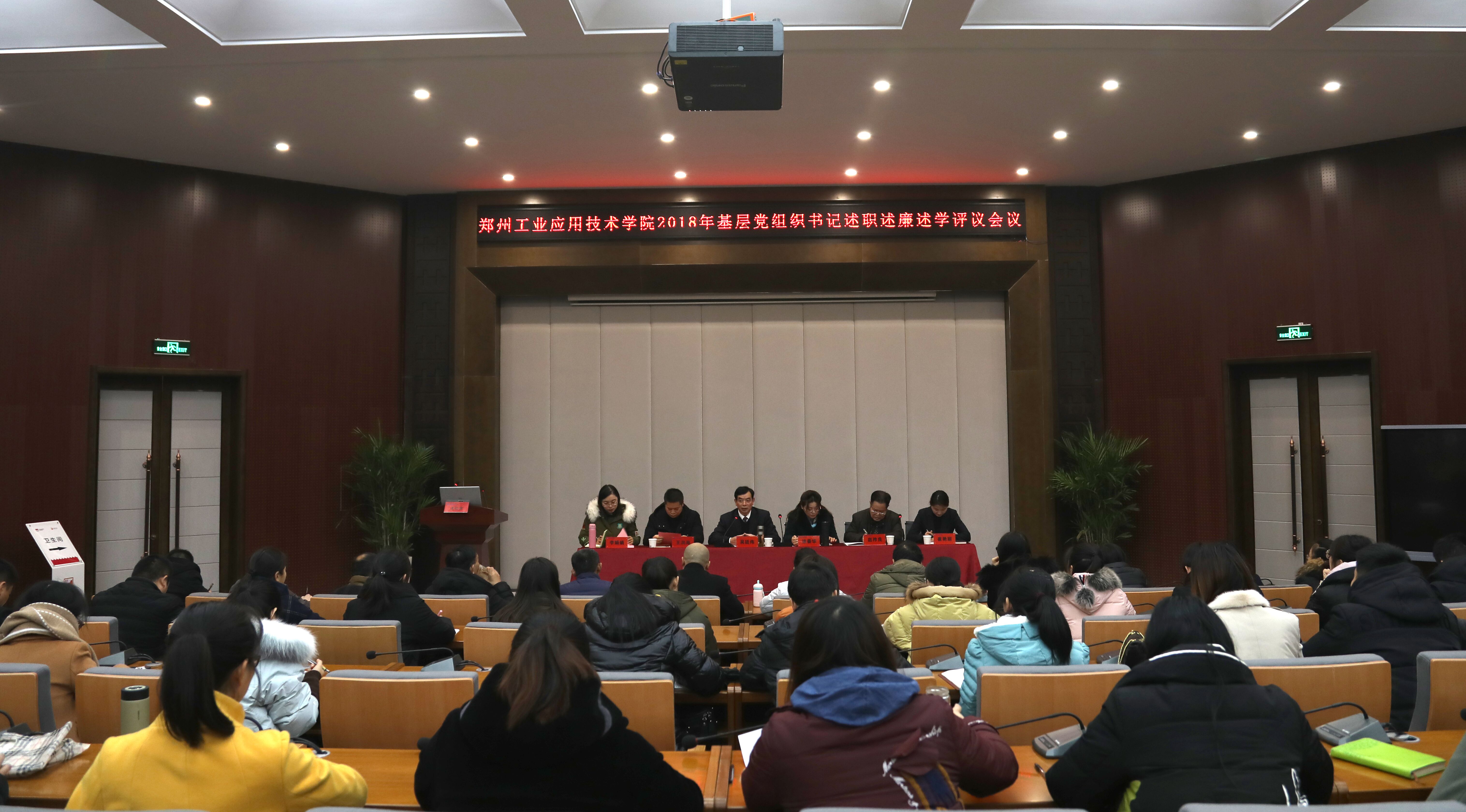 12月25日上午,郑州工业应用技术学院党委在东校区建工楼天健厅举行了2018年基层党组织书记述职述廉述学评议会。校党委委员吴廷伟、徐春华、王洪海、赵祚良、李娟娟、崔艳丽及各分党委、党总支和直属党支部委员参加了评议会。