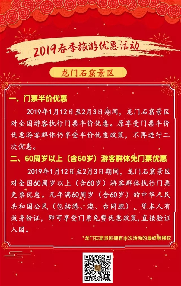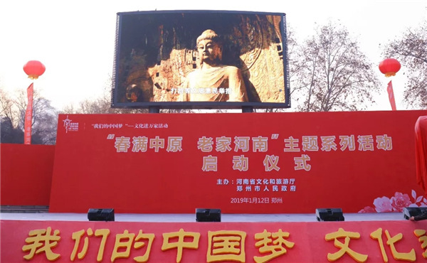 “端上老家年味大餐,品味河南文旅盛宴”。2019年1月12日,由河南省文化和旅游厅主办的“春满中原 老家河南”主题系列活动在郑州正式启动。作为河南文化旅游的一张金色名片,龙门石窟在活动现场面向全国隆重推出门票优惠政策,此举是积极响应河南省文化和旅游厅号召,进一步落实洛阳市委、市政府文化惠民的又一举措。