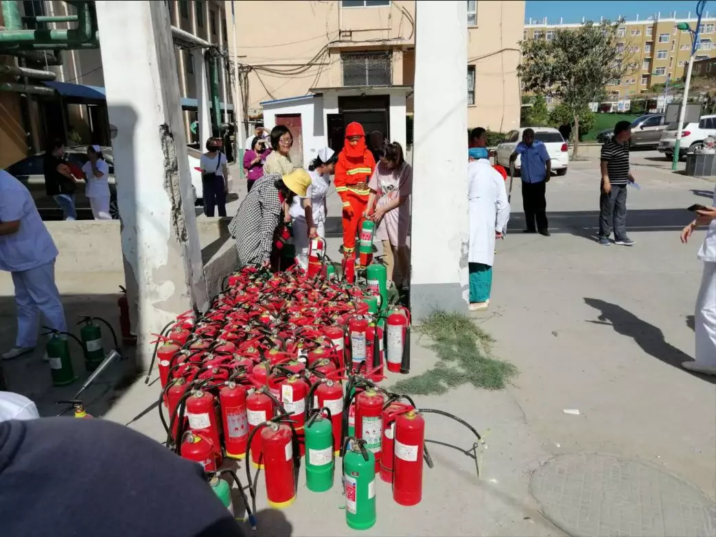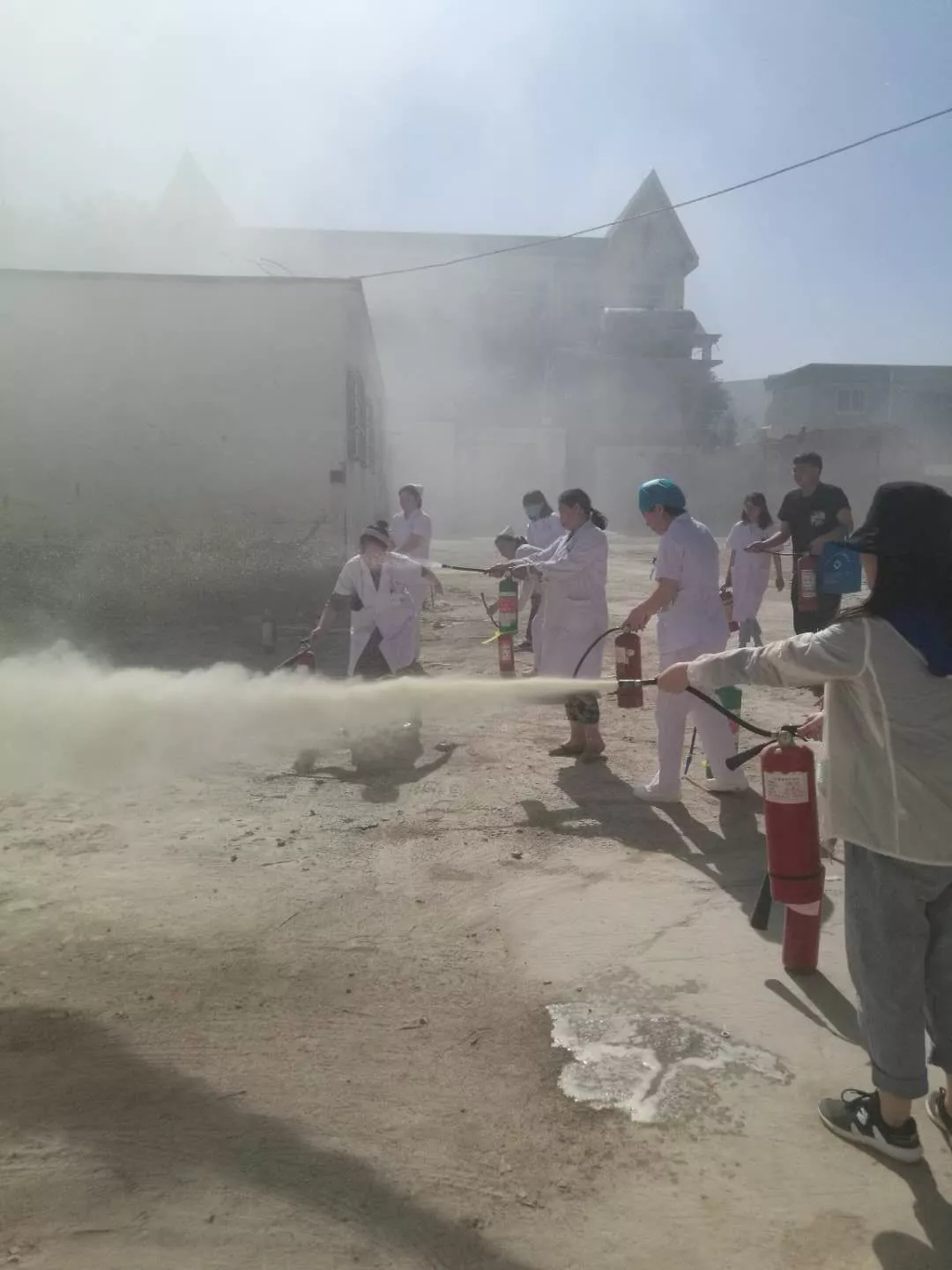 消防讲座结束后,保卫科组织全院职工利用院内各类灭火器共计235具,在院内西北广场进行灭火实战演习,让到场人员都能进一步熟练对灭火器材的使用方法,并学会区分不同种类的灭火器材,做到能有针对性的扑灭初起火灾。通过不断靠近并扑灭起火物体,减少大家对火的恐惧,一旦火情出现,也能临危不乱、冷静处置。