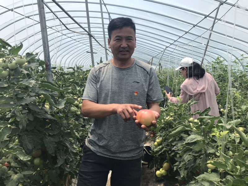 现在是西红柿上市的季节,谢贵东请了五六个贫困户在棚里帮忙采摘。“我们来帮忙采摘番茄,按天是60,按小时7块5,凉快的时候干活,能挣钱,也不累。”正在谢贵东大棚里忙着采摘西红柿的同村贫困户谢致伦很愿意跟着谢贵东一起脱贫致富。