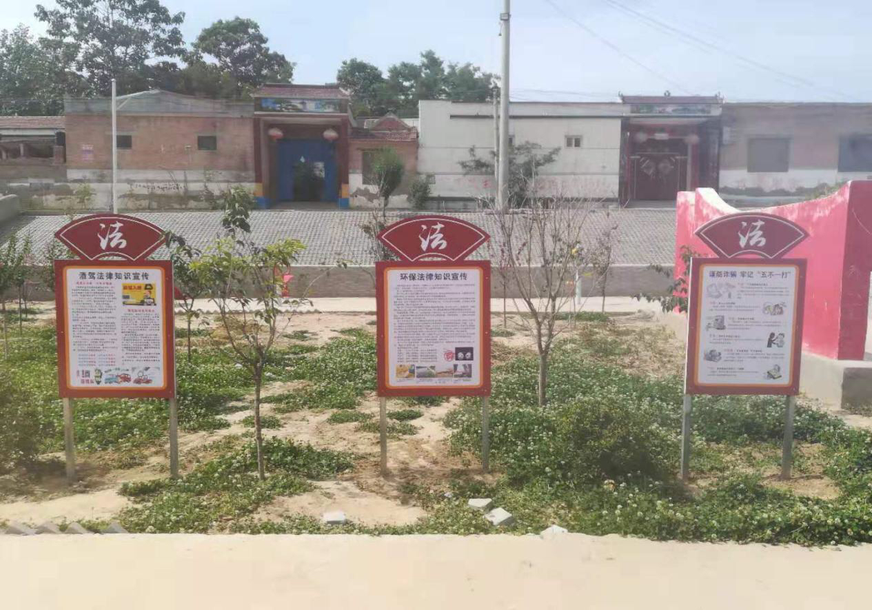 以胡口村原有的党建文体广场为依托,进行详细勘察规划,认真研究确定法治广场建设设计方案,坚持以"以人为本,因地制宜,突出特色,实用为先"为标准,在原有党建文体广场中融入法治元素,用法治漫画、以案释法、法律小故事、法律名言警句等群众喜闻乐见的展现形式以及通俗易懂的语言,宣传与群众生产生活密切相关的法律常识。
