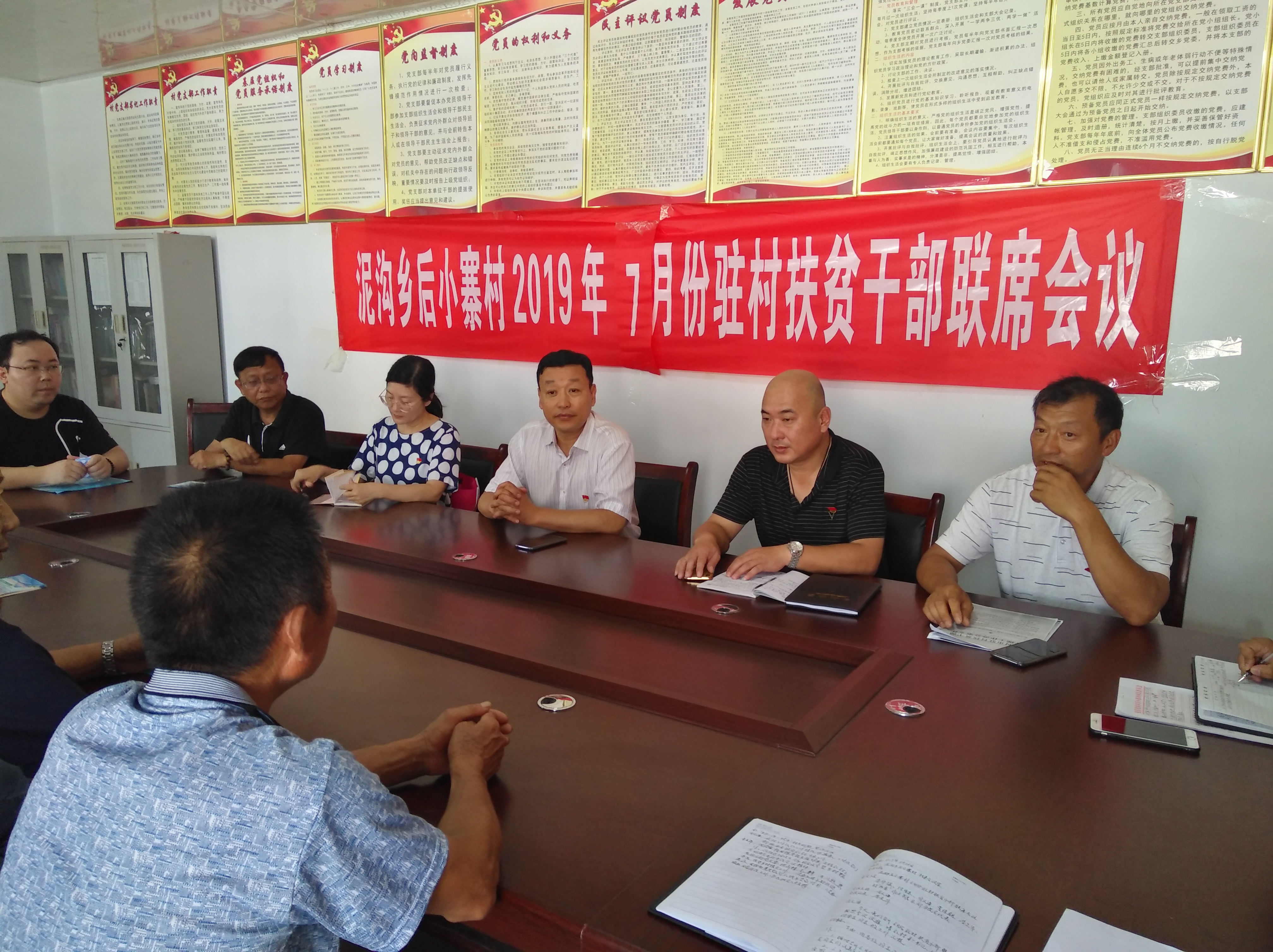 在村委会议室召开的7月份驻村扶贫干部联席会议上,驻村第一书记、工作队队长付承志对后小寨村开展的路边硬化、主干道墙面粉刷、扶贫宣传标语、扶贫宣传漫画上墙等村容村貌整村推进工作及自来水管道改造、“六改一增”开展情况进行了汇报。副院长刘钊强调,开封市中心医院党委将继续发挥坚强后盾作用,帮助工作队解决驻村工作中遇到的问题,希望工作队队员把后小寨村当成自己的第二故乡和第二单位,在各级党委、政府的坚强领导下,与全村党员群众齐心协力,打赢脱贫攻坚战。