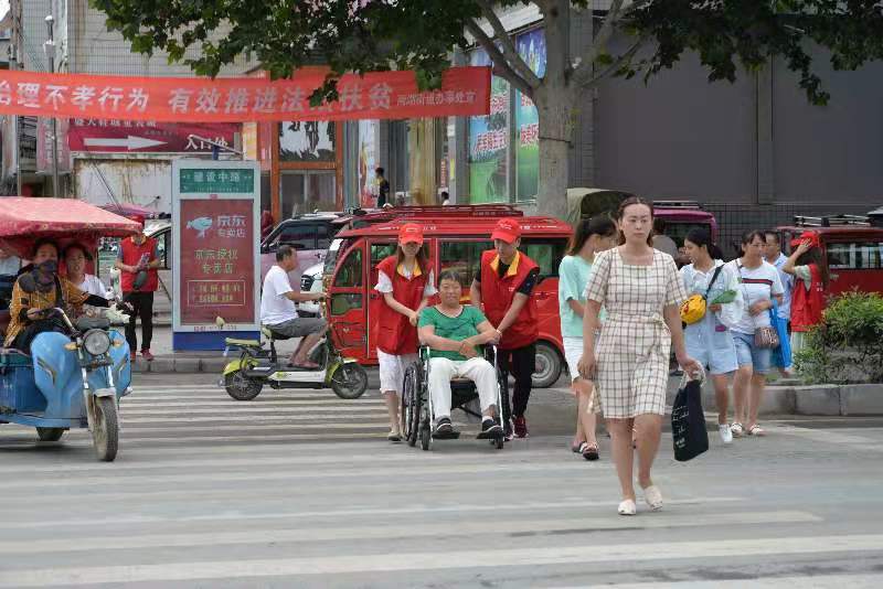 在活动现场,青年志愿者身穿红马甲,佩戴小红帽,引导车辆、行人各行其道,对交通疏导、劝阻非机动车闯红灯、逆向行驶、越线等待、随意掉头等不文明行为,提醒过往行人主要交通信号等,主动搀扶帮助行动不便的老人过马路。同时,志愿者向过往群众宣传交通安全知识,积极倡导遵守出行、文明出行、低碳出行、绿色出行,增强行人交通安全意识,提升城市的文明交通形象。