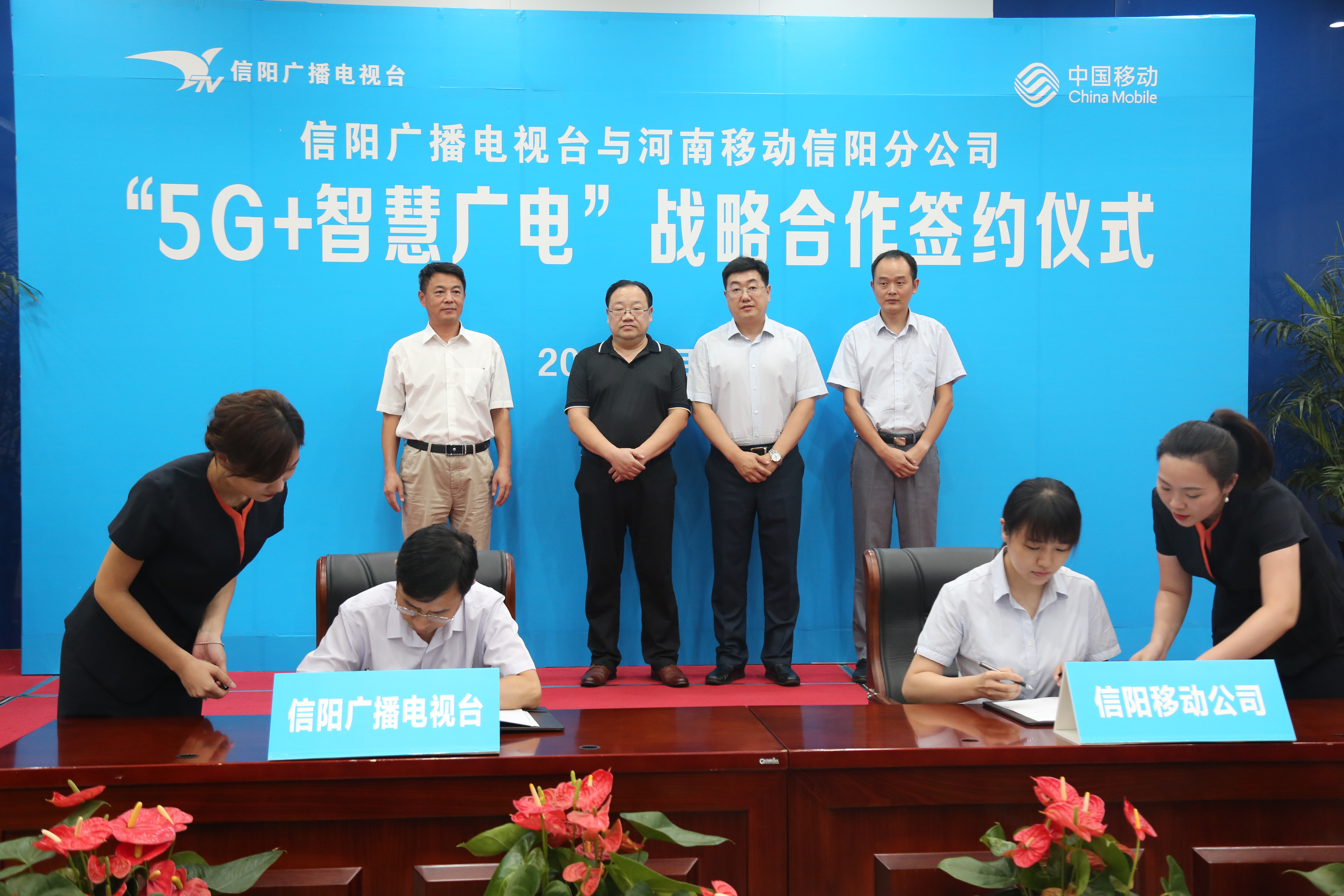 大河网讯 9月3日下午,信阳广播电视台与信阳移动举行“5G+智慧广电”战略合作协议签约仪式,双方将在广电业务与5G业务深度融合、促进IPTV业务可持续发展、推动云计算、大数据合作等六个方面全面开展战略合作。