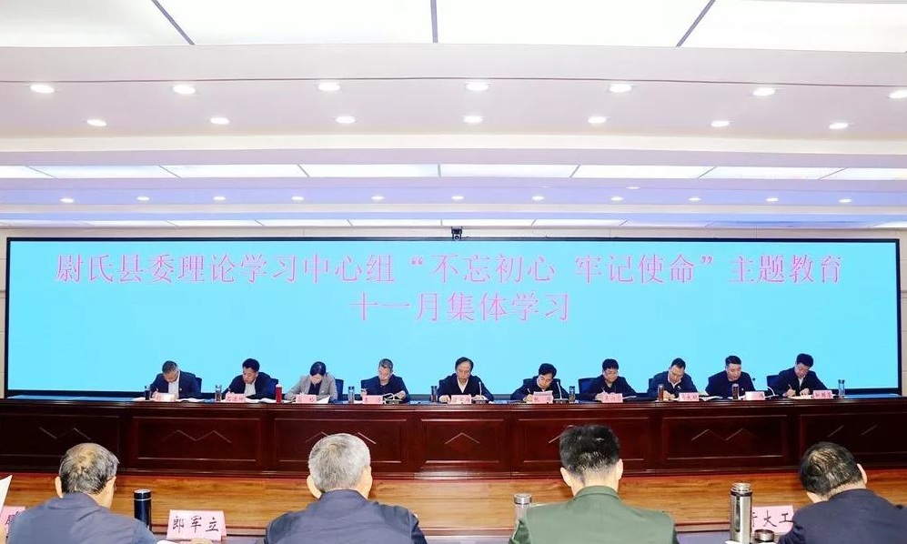 大河网讯 11月5日上午,尉氏县委理论学习中心组举行“不忘初心、牢记使命”十一月份集体学习会议,传达学习《中国共产党第十九届中央委员会第四次全体会议公报》。县委书记梁东雁主持会议,张锋、李涛、吴六零、高玲、吴大明、石德坤、叶伟、刘玉宾、靳国营等四大班子领导出席会议。