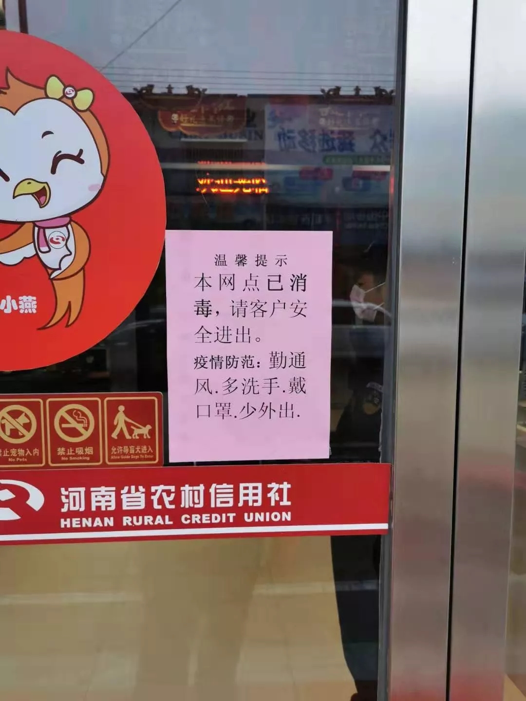 大河网讯 新型冠状病毒感染的肺炎疫情突发以来,明港农信联社高度重视,积极应对。联社党委要求全辖各营业网点把员工的生命安全放在首位,将疫情防控作为当前工作的重中之重,切实履行“守土”之责。辖内各营业网点以高度的政治责任感、使命感,迅速行动,积极落实疫情防控工作要求,保障各项工作有序运行。