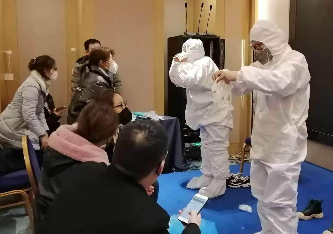 此次组建的120人的医疗支援队伍,医护人员相对比较充足,但感染控制专职人员只有两个。感控人员要负责所有医护人员上岗前防护服、口罩、护目镜等防护物品的穿脱培训和把关。每一班次都要有感控人员的参与。