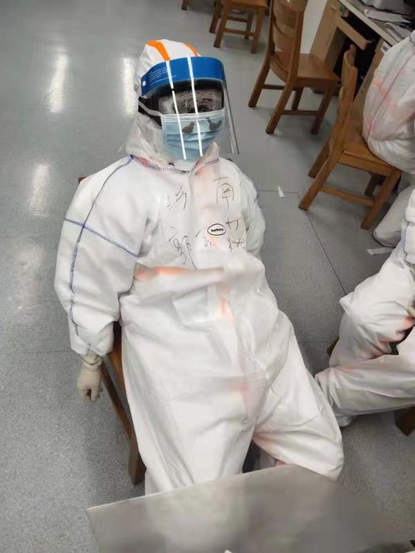 “不透气的防护服使我汗流浃背,护目镜更是雾气腾腾,所有的一切操作都比平时困难了许多倍。”2月6日,郭亚茹写下了自己的首战感受,“随着时间的流逝,我能清晰地感受到身上的衣服已渐渐全部湿透,本就戴着眼镜,再加上护目镜的压力,感觉鼻梁都要被压断了,但我明白,此时自己是一名冲锋陷阵的战士,在这场战役面前决不能退缩!我们必胜!”