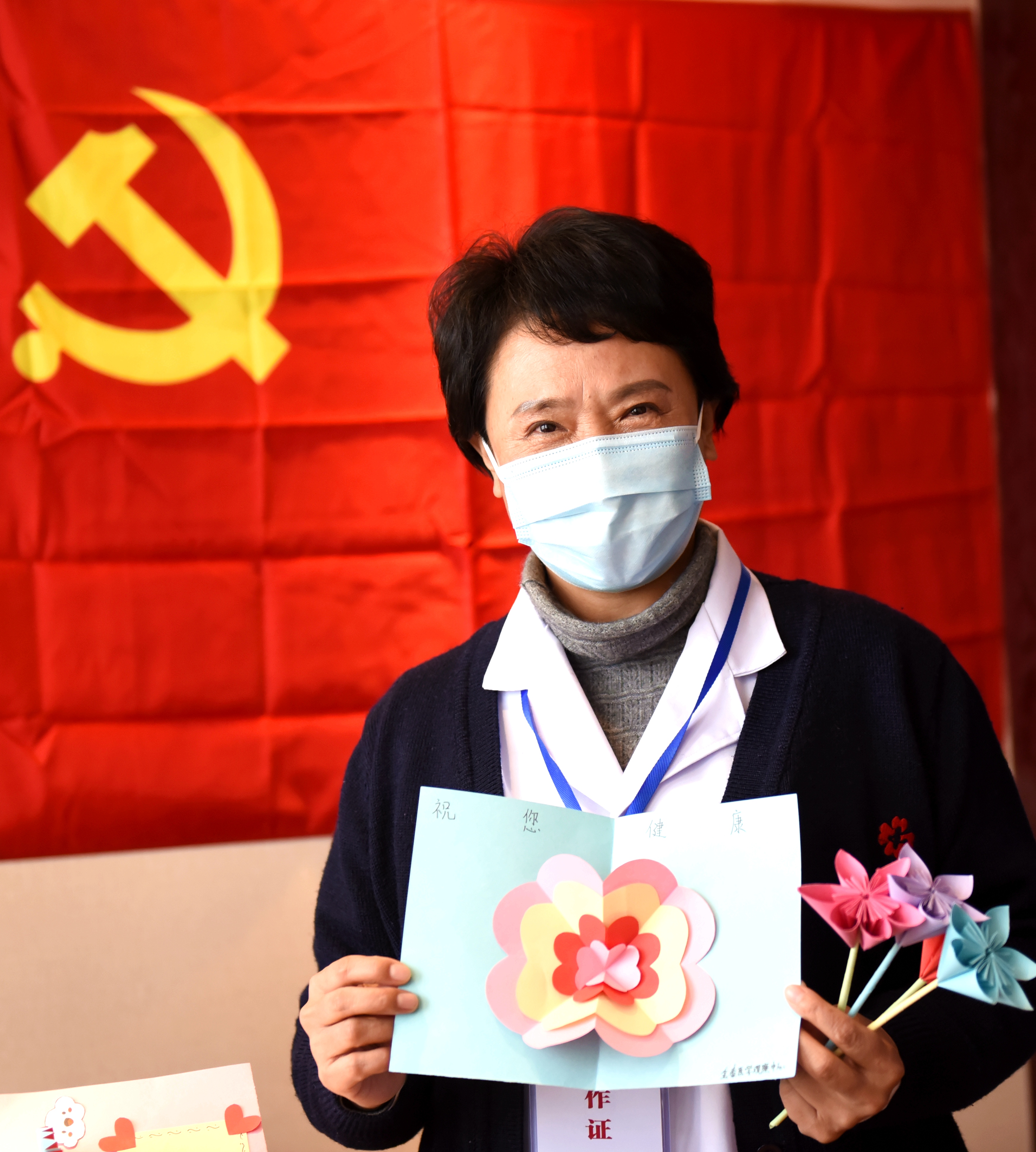 为了让每一位观察人员都能感受到浓浓的人文关怀,医护人员决定亲手为观察人员制作爱心贺卡。健康观察组组长朱洁心灵手巧,带领他们共同制作爱心贺卡,直到深夜。大家纷纷在贺卡上写下祝福语,祝贺第一批返汴人员解除医学观察,返家与亲人团聚。
