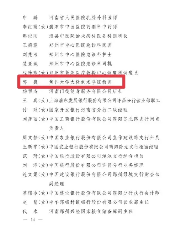 大河网讯(记者 王辉 通讯员 张继文 张哲)5月2日,记者从焦作大学获悉,河南省总工会4月29日下发了《关于表彰2020年河南省五一劳动奖和河南省工人先锋号的决定》,在发布的2020年河南省五一劳动奖章名单中,该校郭巍老师名列其中,荣获河南省五一劳动奖章。
