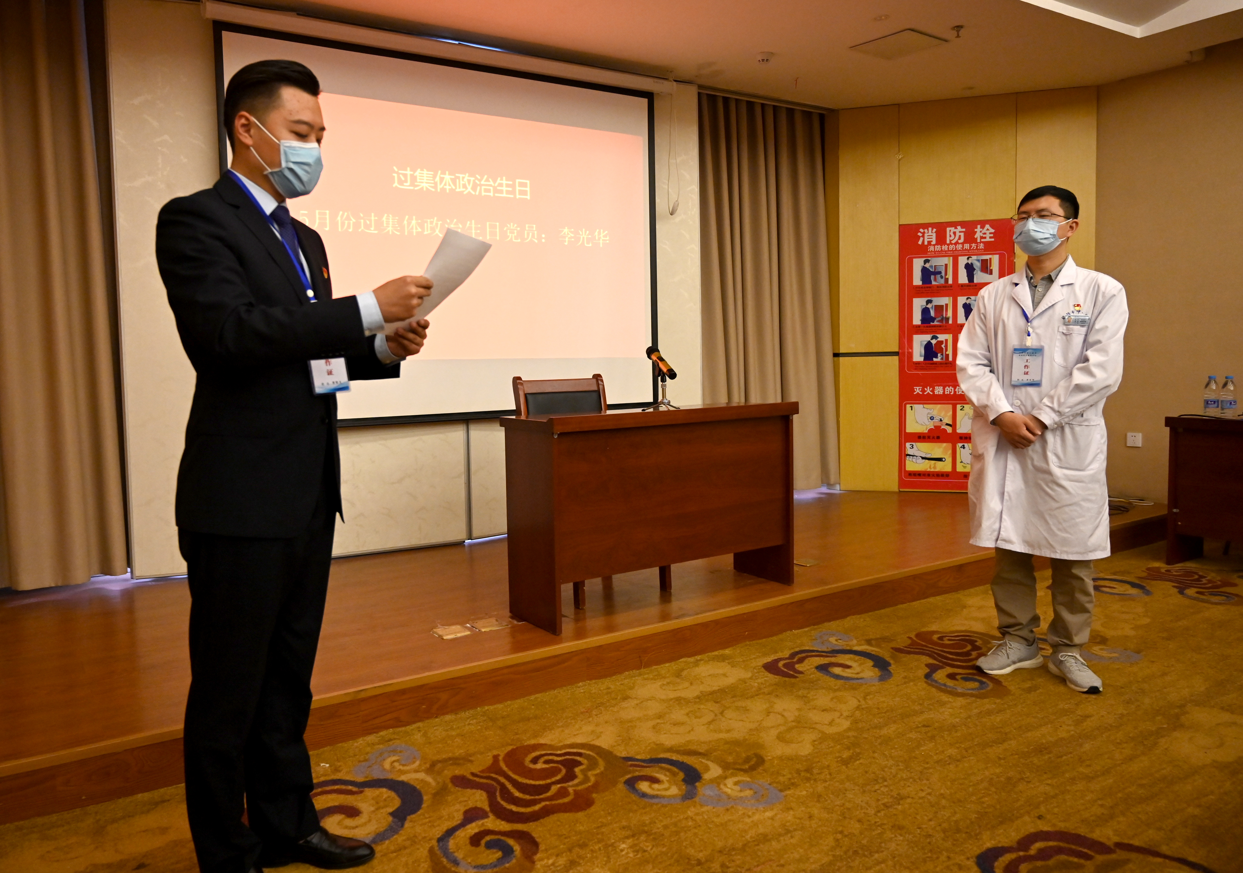 5月份是党员李光华同志的政治生日,组织委员贺悦文同志代表党支部送上生日寄语,并完成了交纳党费和公示党员积分等规定动作。