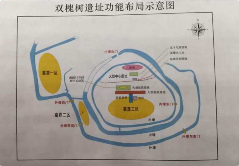 三重环壕组成的严密防御设施,在仰韶文化中晚阶段繁荣时期共存,连同融合北斗九星图案的重要建筑等遗迹,表明双槐树人在聚落布局中高度重视礼仪化设计思维,可能已有了较为成熟的"天地之中"宇宙观。