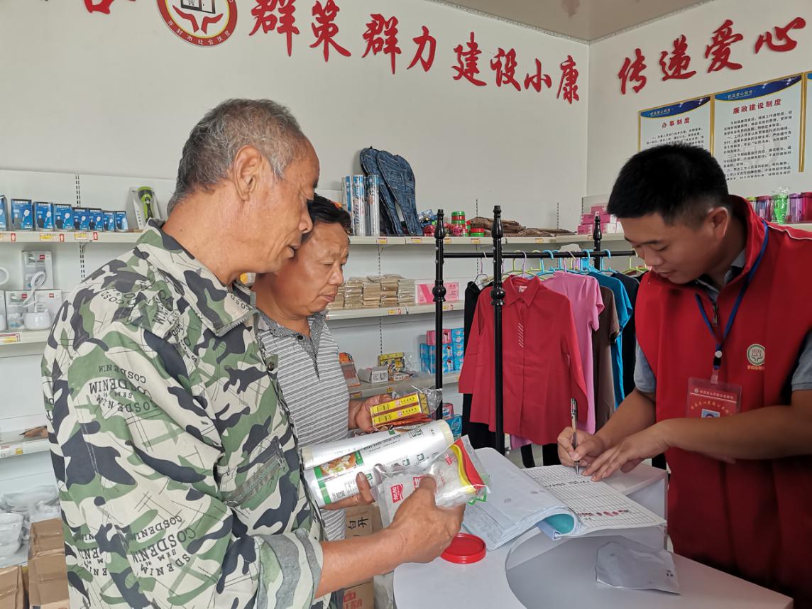 上门给群众兑换物品的是李胜亚,他是杞县社会扶贫战场上的108将中的一员,也是县考录到乡的扶贫专干。在干好扶贫任务的同时,他还负责乡爱心超市的运营管理。