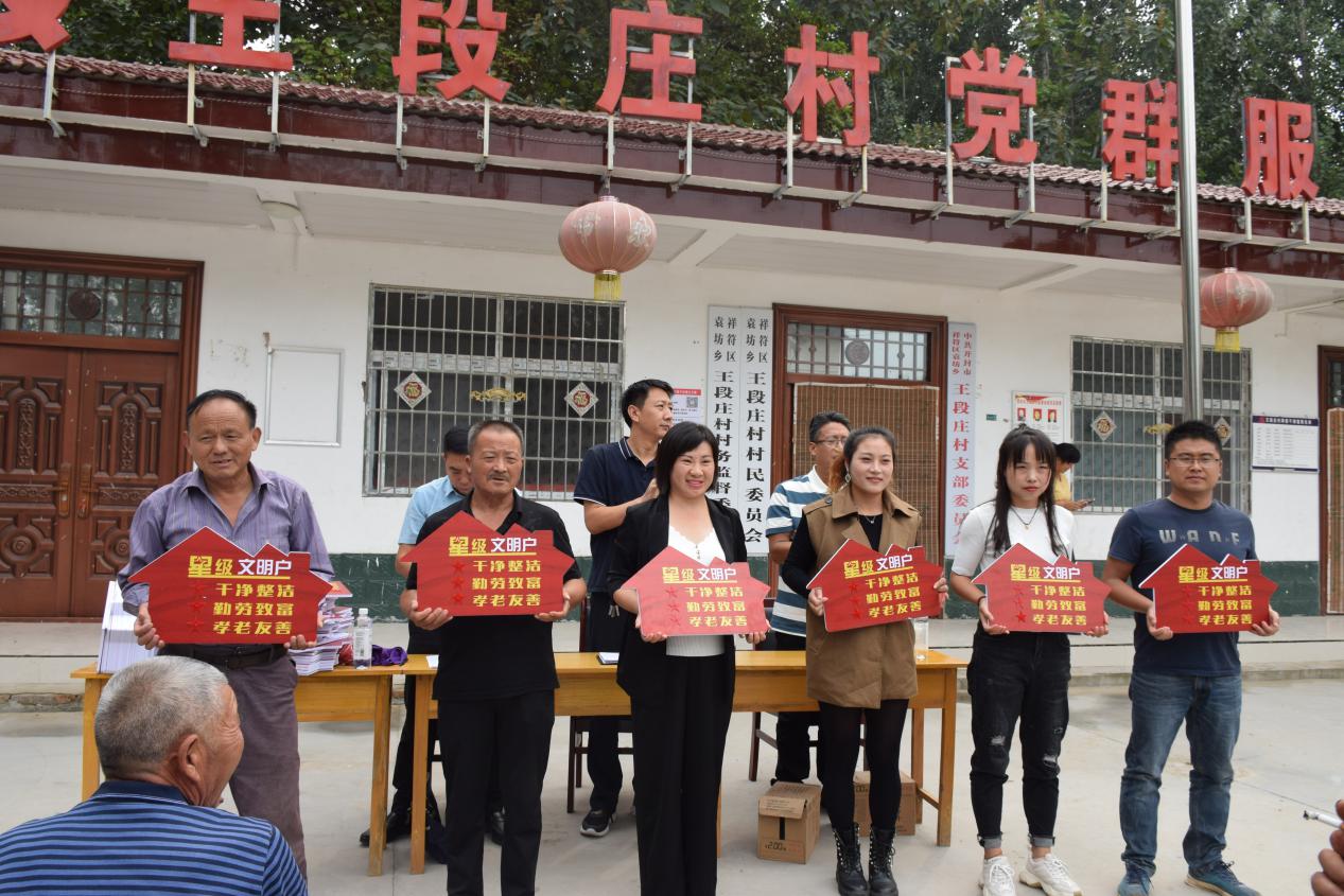 大河网讯 “干净整洁一星,勤劳致富一星,孝老友善一星……”几位村民正在热烈讨论着。这是在袁坊乡王段庄“星级文明户”的授牌现场,受到表彰的“星级文明户”代表抑制不住内心的喜悦,二星级文明户王春书表示,“拿到这个牌子就像拿到了奖状,是对我们一家的肯定!现在我们家更有干劲了,争取早日把另一颗星星也挂上!”
