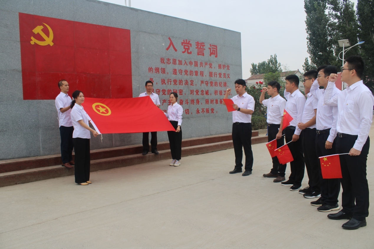 在西姜寨村党群服务中心,农发行开封市分行党委书记、行长刘永贞带领全体党员重温入党誓词。团员重温入团誓词,团员代表邵西明进行了题为“爱祖国 感党恩 听党话 跟党走——做勇于奋斗的农发行青年”团旗下的演讲。