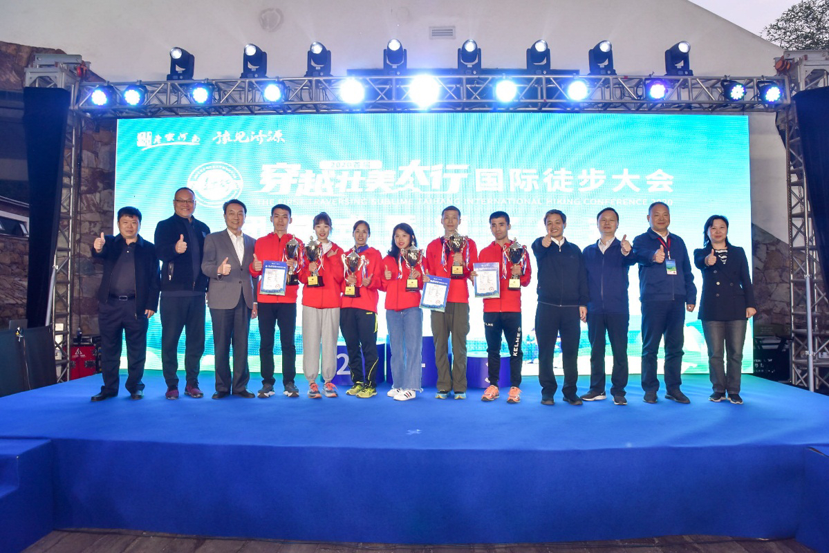 济源示范区管委会主任石迎军发表致辞,此次徒步大会,通过“体育+文化+旅游”的方式,将太行山济源段的自然之美、人文之美与脚步的丈量、亲身的体验串联起来,实现了“体育与文旅的跨界融合”“线上与线下的链接整合”“生态与人文的完美契合”。并邀请大家有时间多到济源来、多到太行山中来,感受愚公家乡人民的热情好客,领略太行山区独特的人文内涵,饱览太行王屋雄奇秀美的森林景观,共享健康美好人生。 2020首届穿越壮美太行国际徒步大会裁判委员会主任、济源示范区管委会副主任卫祥玉宣布男子组和女子组前十名获奖参赛者;济源示范区管委会主任石迎军、河南省体育局群体处处长赵峻、中国旅游协会文化体育旅游分会会长高铭铎分别为女子专业越野组冠亚季军获得者颁奖;济源示范区党工委书记张战伟、中国旅游协会副秘书长佘小殷、济源示范区管委会委员侯波分别为男子专业越野组冠亚季军获得者颁奖。