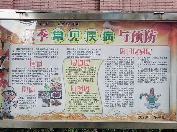 据悉,该校是寄宿制学校,传染病防治工作一直备受重视,学校每学期都会根据节气及时的开展专题讲座、宣传版面展示等多种宣传教育活动,提高学生的疾病预防意识,尽全力阻止传染类疾病在校园传播。