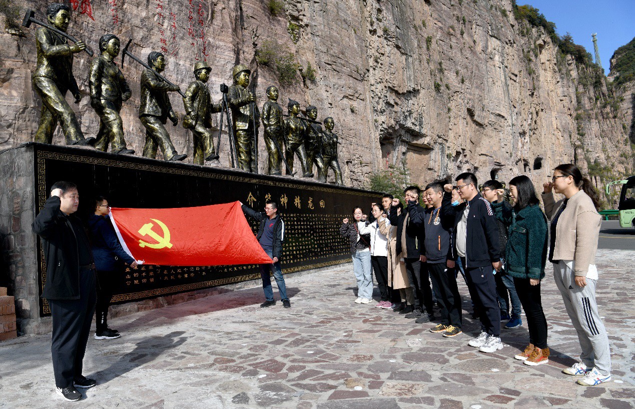 在回龙挂壁公路回龙英雄群体纪念塑像旁,大家面向党旗,重温了入党誓词,接受先进典型教育和红色精神洗礼。随后,学习人员重走了当年回龙村民历经千辛万苦修筑的蜿蜒8公里,腰缠9座峰梁的绝壁天路以及S型隧道,亲身感受回龙人战天斗地的无畏精神,并为他们“一心为公、不畏艰险、顽强拼搏、无私奉献”的伟大精神所深深感染。