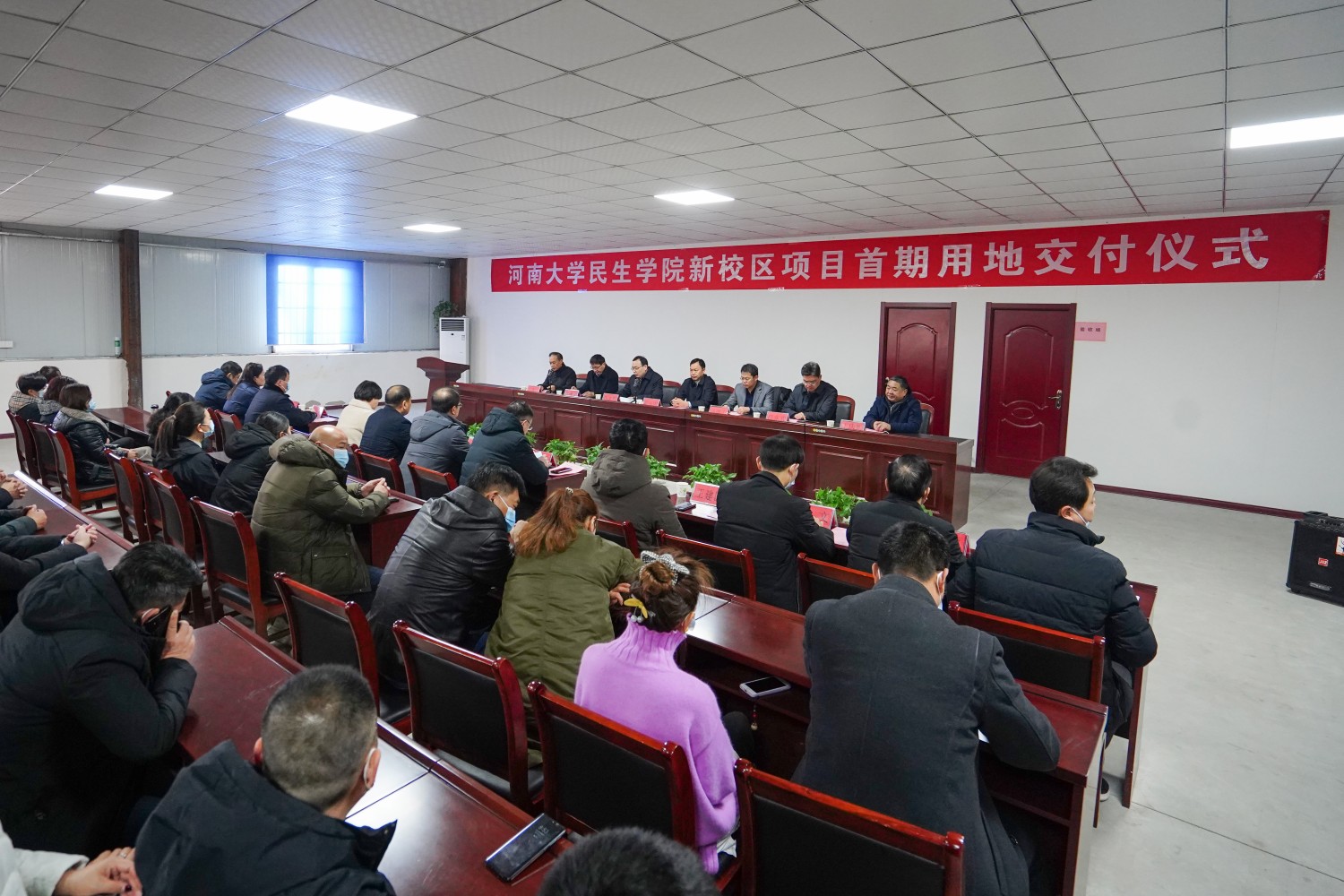 大河网讯(记者董伦峰)12月30日上午,开封市城乡一体化示范区与河南大学民生学院在杨岗城中村改造项目指挥部举行河南大学民生学院新校区一期用地交接仪式。开封市副市长黄玉国,河南日报报业集团党委委员、副总编辑孙德中出席仪式。