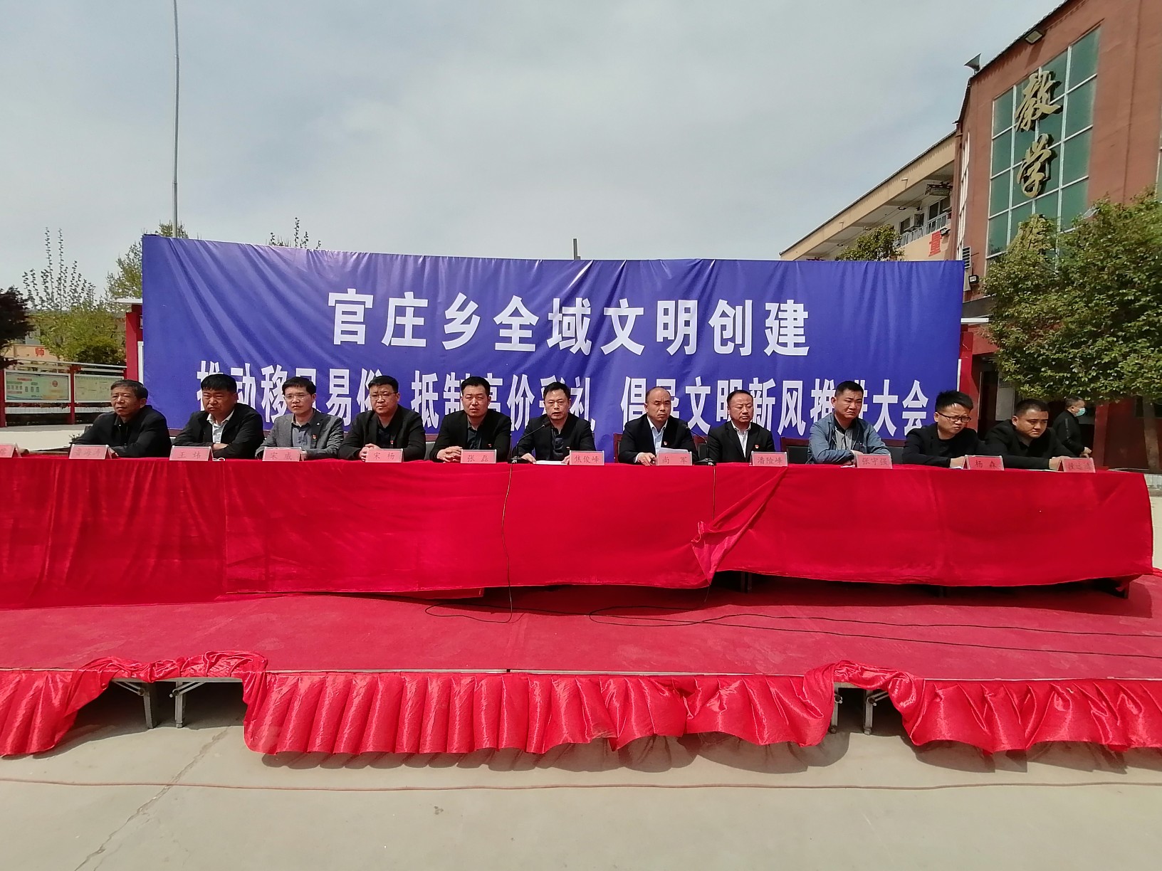 大河网讯 (记者董伦峰)4月18日,官庄乡召开全域文明创建,推动移风易俗、抵制高价彩礼、倡导文明新风推进大会,会议宣读了关于此项活动的实施方案,干部群众代表作了表态发言,对典型代表进行了表彰。乡党委负责人作了重要讲话,号召党员干部带头,全民参与、以此次活动开展为契机,常抓不懈、持续推进、多策并举、以实实在在的效果取信于民,为官庄乡社会各项事业的发展做出应有的贡献。乡全体班子成员、各村两委干部、党员群众代表近400人参加了会议。