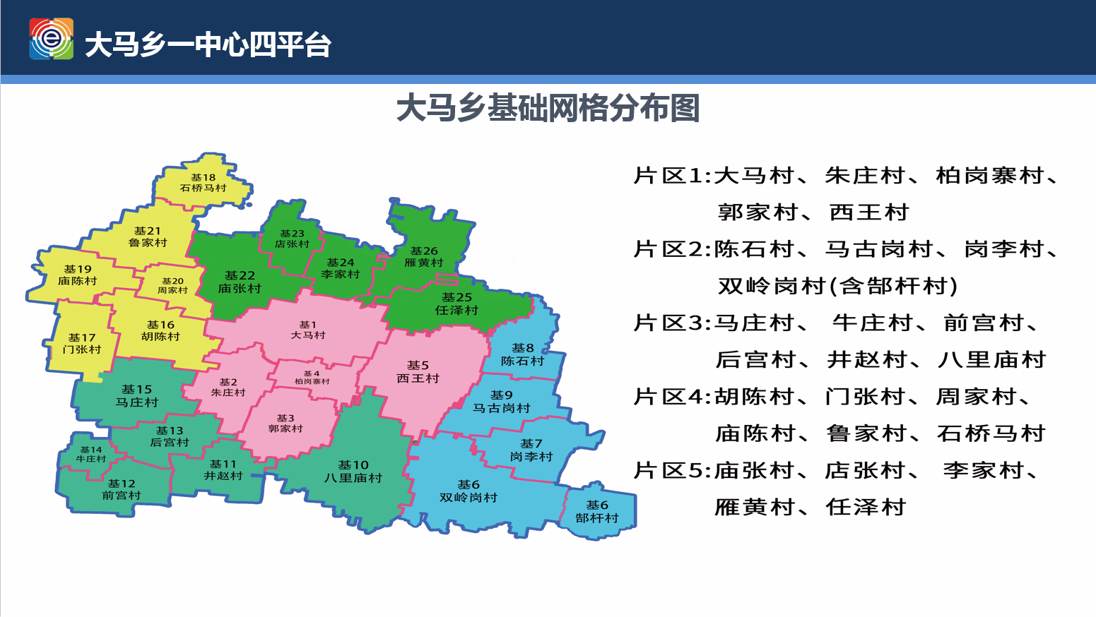 “结合2020年一中心四平台运行中取得的经验和发现的问题,我们将全乡划分为5个片区,26个网格。打破自上而下的‘派单’模式,各网格员连续统计上报一至四级事件,将工作重心和工作重点不断下移,充分激发基层活力,提升基层社会治理和服务群众水平,全力打通了服务群众的‘最后一公里’”。一中心四平台主任杨慧超说。