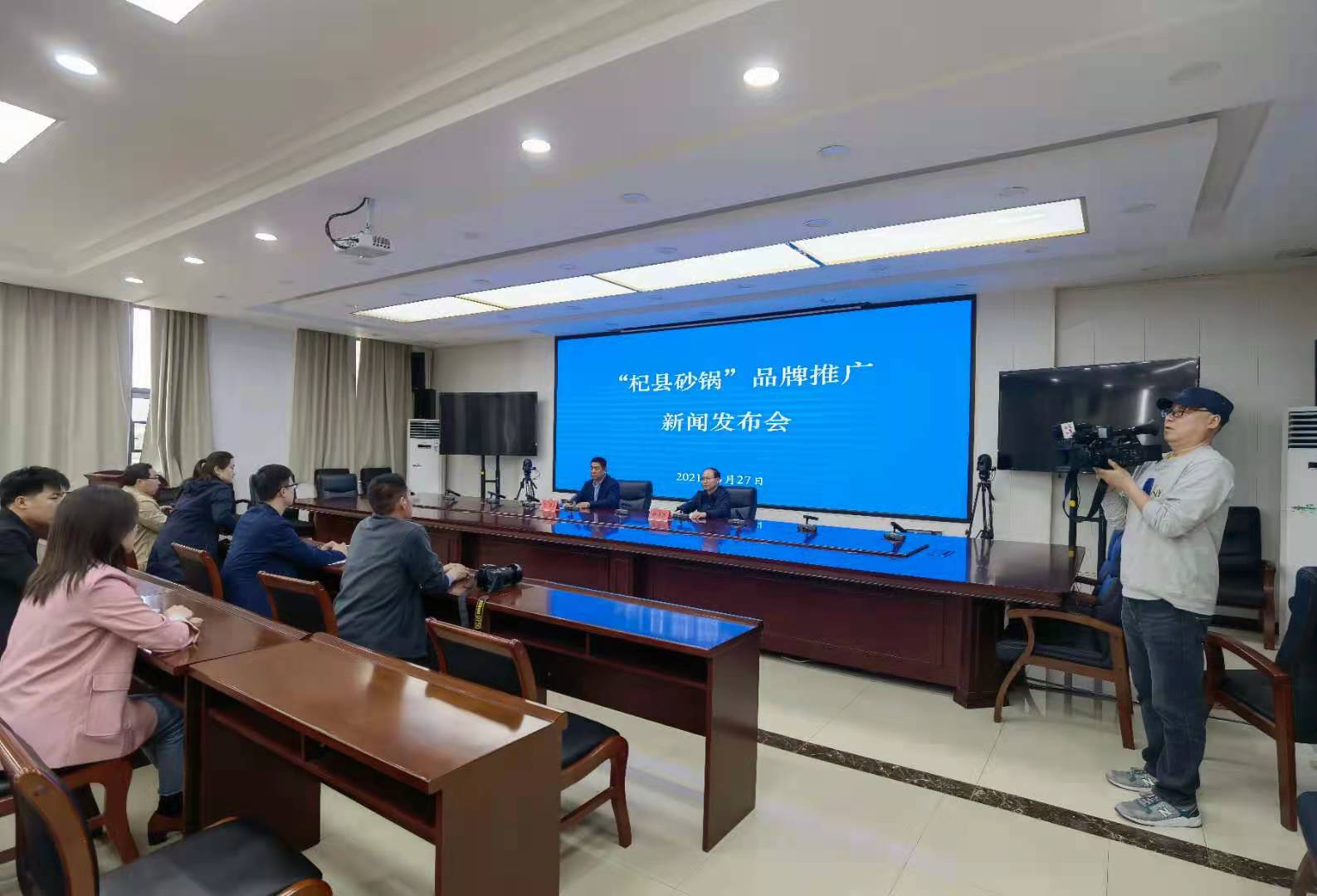 大河网讯 2021年4月27日,杞县举办“杞县砂锅”品牌推广新闻发布会,杞县县委宣传部常务副部长陈世威主持发布会,杞县文广旅局局长时耀起向与会媒体记者详细介绍了杞县砂锅产业发展的具体情况。