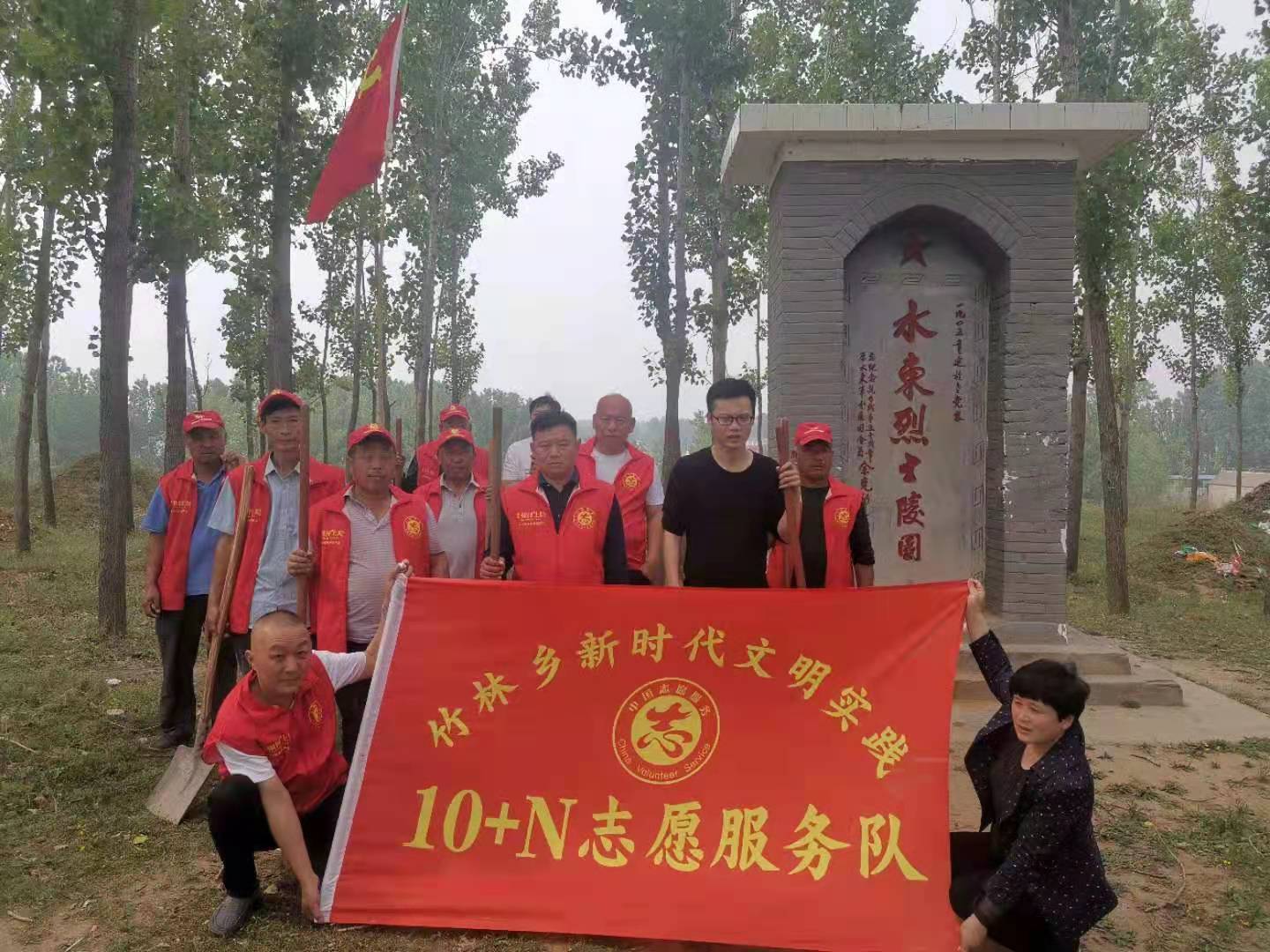 大河网讯 5月12日,杞县竹林乡政府组织志愿者来到庄林村老党寨水东烈士陵园遗址与村内干部群众一起参加红色基地打造活动。